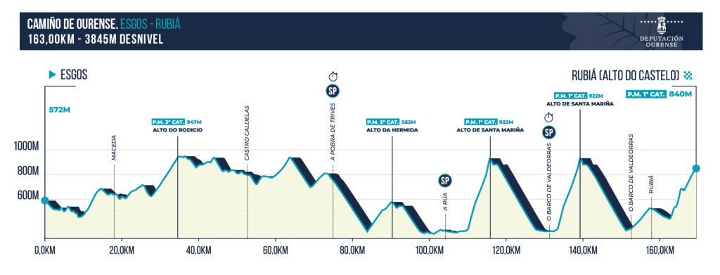 A meteoroloxía volveu a xogar unha mala pasada no Gran Camiño coa suspensión do ascenso ao Alto de Santa Mariña (1ª categoría) polo descenso. Así, ás 13.50h daba inicio a terceira etapa entre Esgos e o Alto do Castelo (Rubiá).