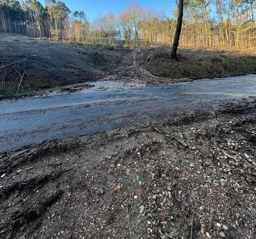 O BNG da Estrada fíxose eco da “desfeita” que deixaron unhas labores de tala na pista que une Rubín e Pardemarín. Nas imaxes compartidas, apréciase como a cuneta reborda debido á acumulación dos restos e, como da outra beira da pista, hai cascallos e rodeiras enlamadas.