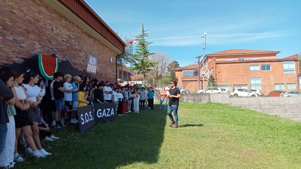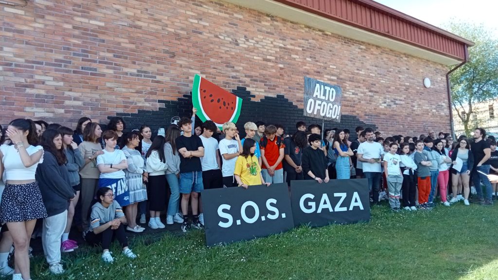 Os centros educativos galegos mostraron este venres a súa repulsa ao xenocidio que está cometendo Israel en Gaza. Nun acto convocado por Docentes con Palestina, os estudantes saíron aos patios ao mediodía para a lectura do manifesto e para gardar un minuto de silencio.