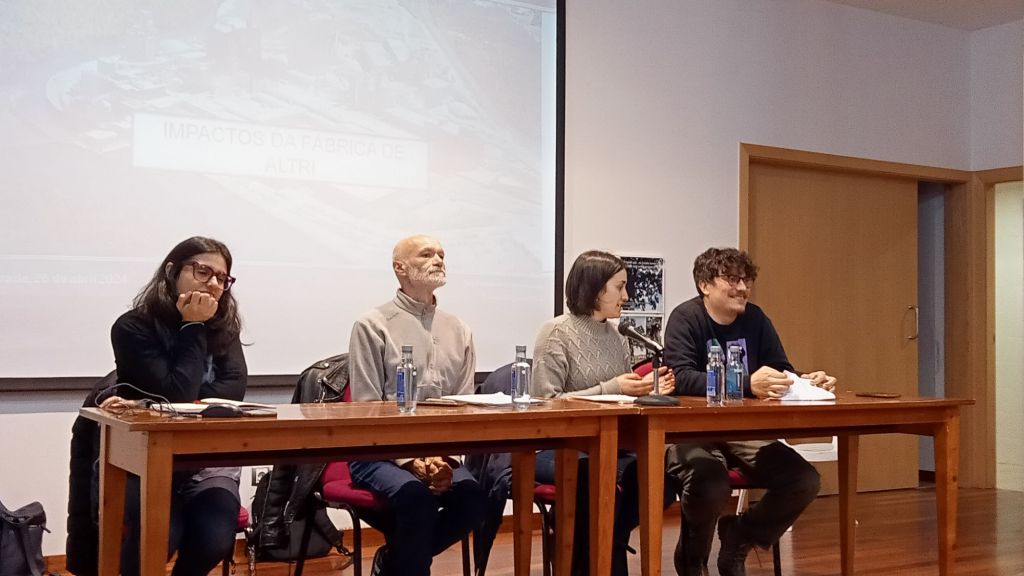 Este venres celebrouse no MOME unha charla informativa sobre o impacto de Altri. No acto interviron Xoán Reices, voceiro do BNG na Estrada; Ariadna Fernández, parlamentaria do partido nacionalista; Bernardo Valdés, profesor de Economía Medioambiental, e Ana Santamariña, experta en augas da ADEGA.