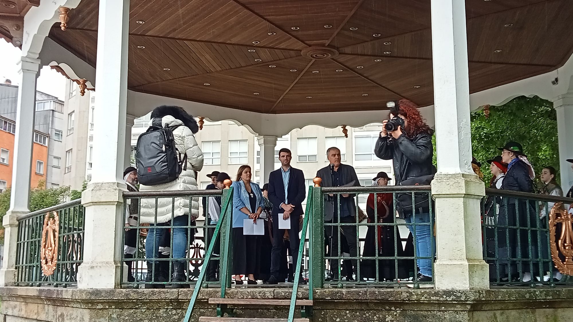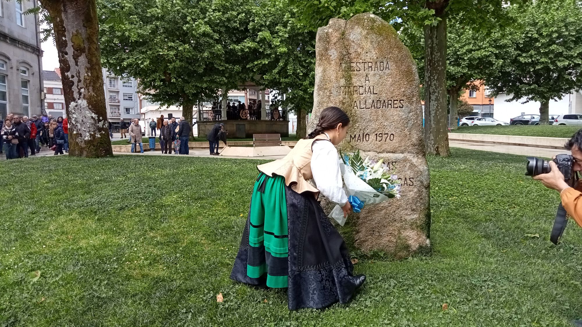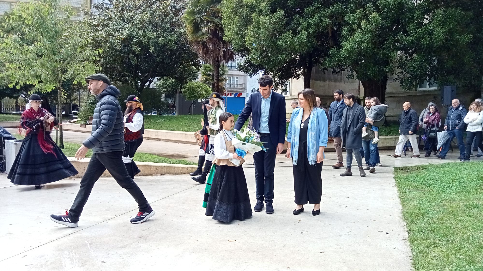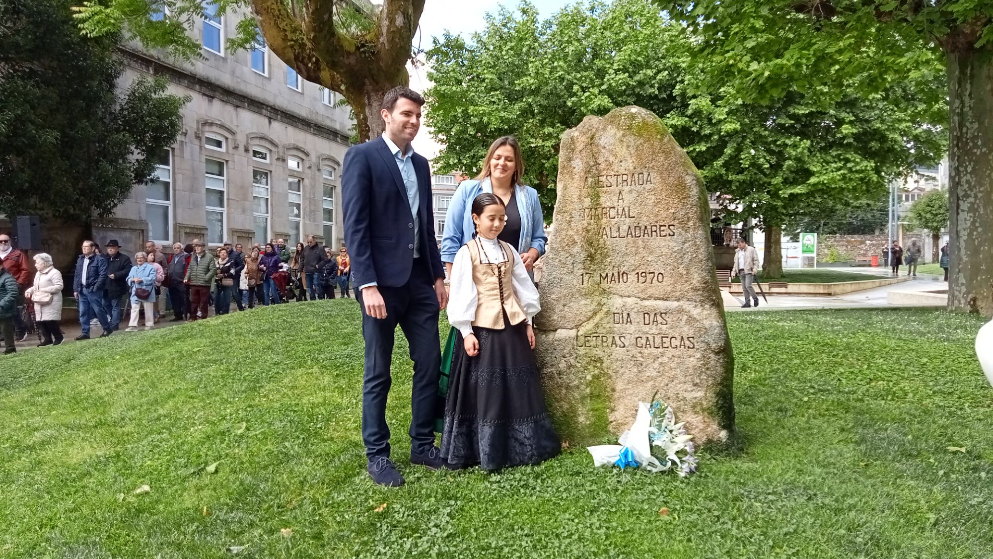 Gonzalo Louzao, Ana Cela e a rapaza que relizou a ofrenda floral // O Xornal da Estrada
