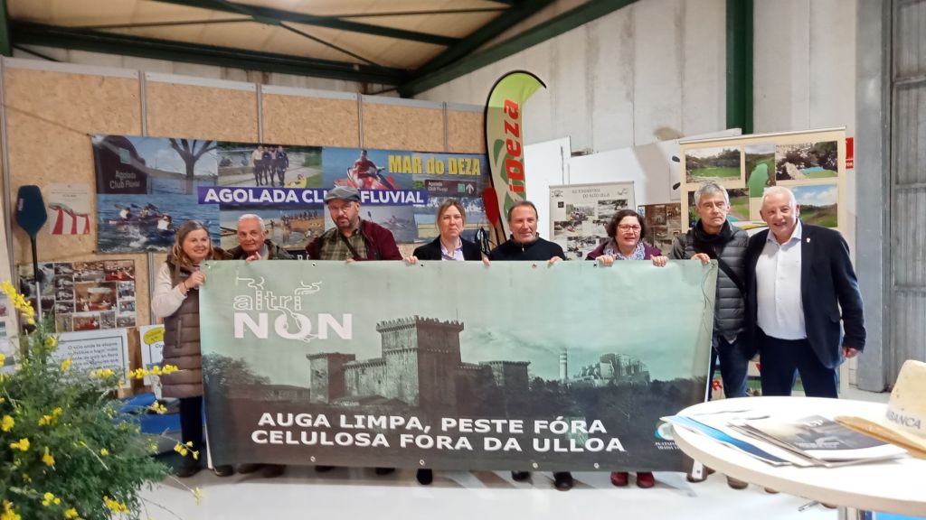 Na visita tamén falaron con persoas que están en contra do proxecto de Altri en Palas de Rei e a alcaldesa de Antas do Ulla uníuse á pancarta.
