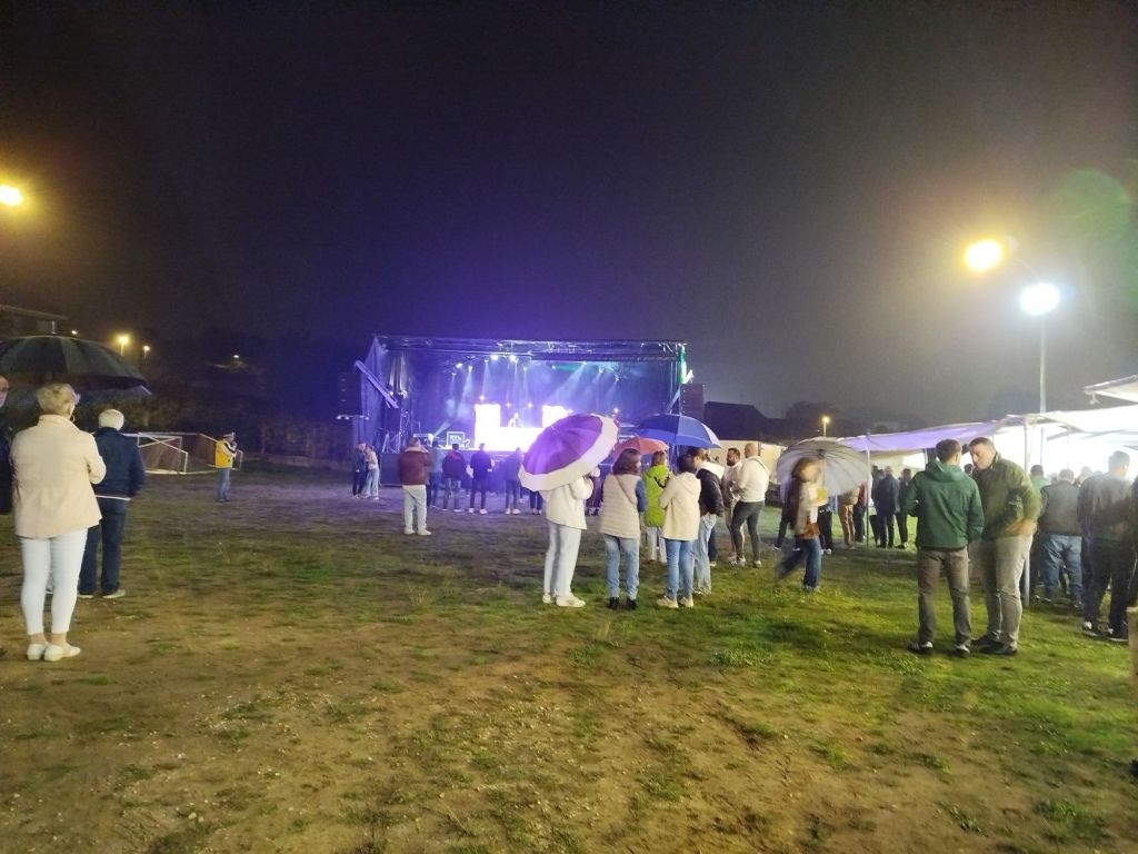 A chuvia non foi capaz de parar a festa en Ouzande. Ata con paraugas veciños, veciñas e xente dos arredores achegáronse ata o campo da festa para celebrar as festas do Socorro.