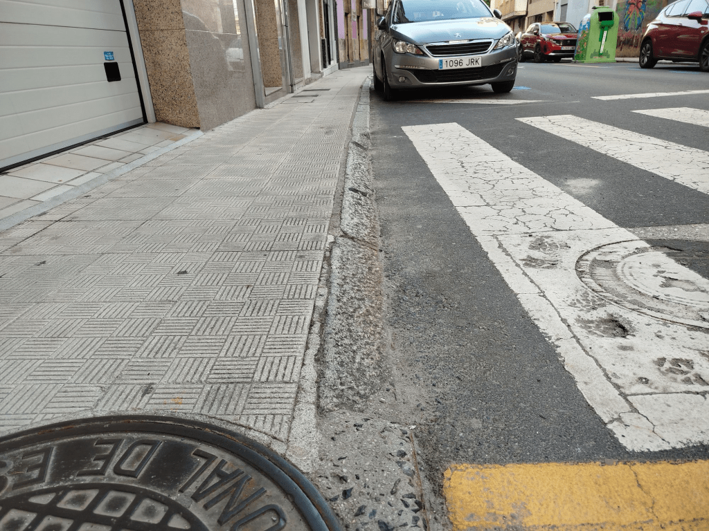 Outros casos cos que se ten atopado con accesos que teñen unha “fochanca no fondo ou que a inclinación deixa moito que desexar”. Neses casos o que pasa é que as rodas dianteiras – máis pequenas que as traseiras – quedan atascadas, segundo nos di. Estas situacións, engade, danse en menor medida nos pasos de peóns máis céntricos.