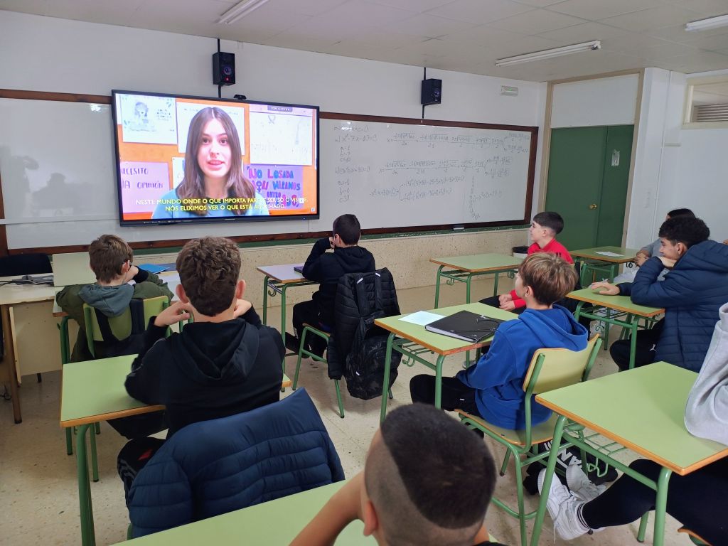 Nos centros educativos tamén celebraron actos polo 25N. No IES Antón Losada Diéguez ás 12.00 horas pararon a súa actividade lectiva para proxectar o manifesto en todas as aulas. Ademais, os alumnos de 3º e 4º de ESO fixeron unha intervención artística coa colocación de paraugas con lemas; tiveron un photocall contra a violencia de xénero; celebraron un concurso de carteis; expuxeron libros na biblioteca e repartiron marcapáxinas conmemorativos.