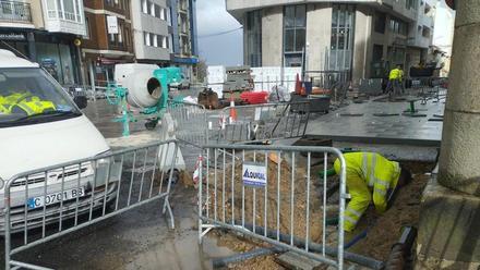 Rotura dunha tubaxe durante as obras da Farola