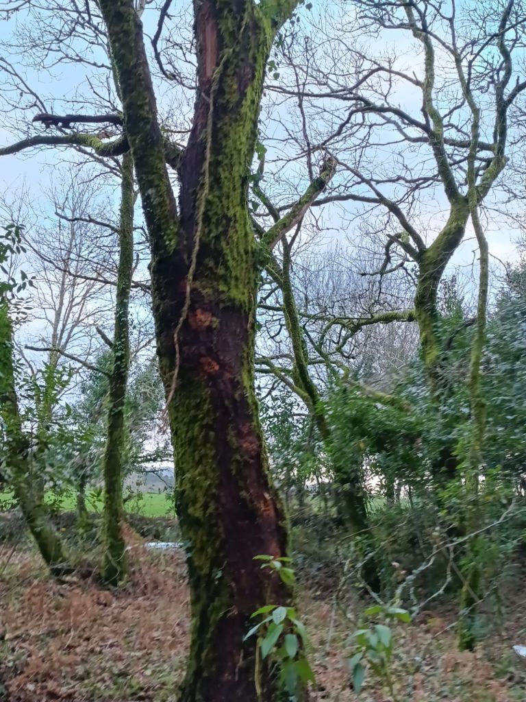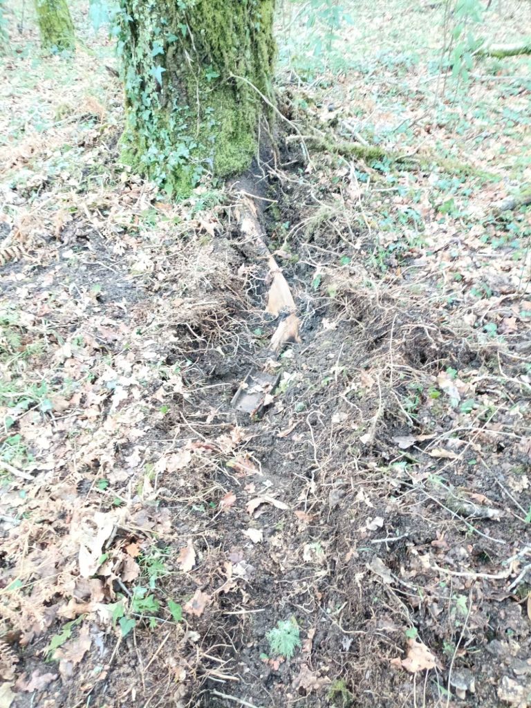 En torno ás 17.00 horas deste mércores un raio caeu nunha árbore no lugar de Escarís, en Nigoi, e provocou que parte das raíces quedaran expostas, ademais de crear un surco na terra que rompeu o asfalto dunha pista, á vez que a atravesaba.