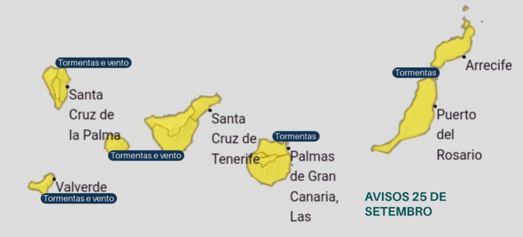 A AEMET activou o aviso vermello por chuvias en varios puntos de Canarias pola tormenta tropical Hermine. Ademais, tamén hai avisos por tormentas e vento.