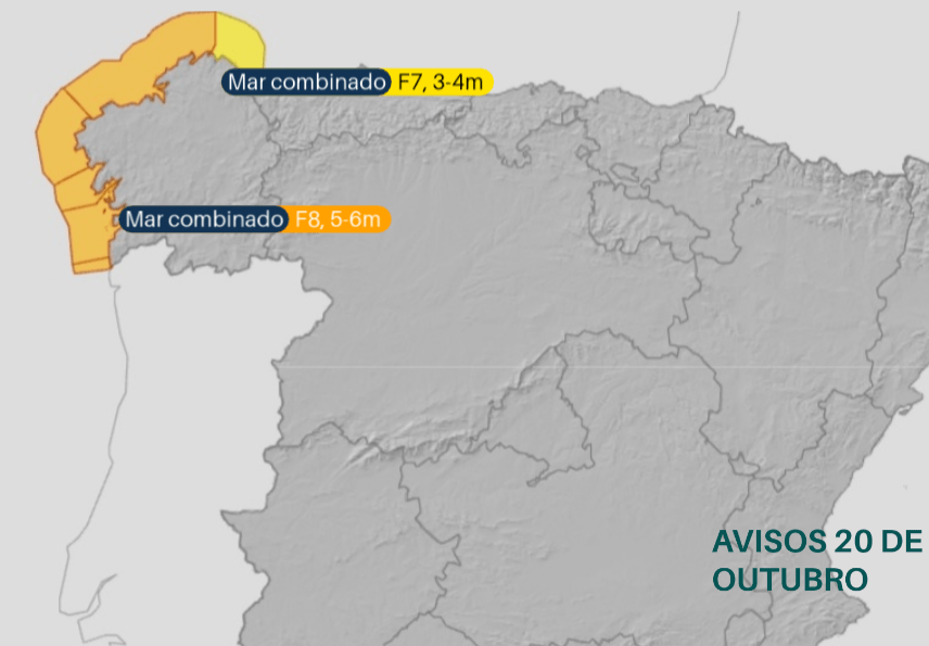 Mañá xoves a borrasca profundizaráse e achegaráse ao noroeste de Galicia, xerando alí un forte temporal marítimo con moi mala mar. A AEMET ten activos avisos laranxas por ventos de forza 8 e ondas de entre 5 e 6 metros.