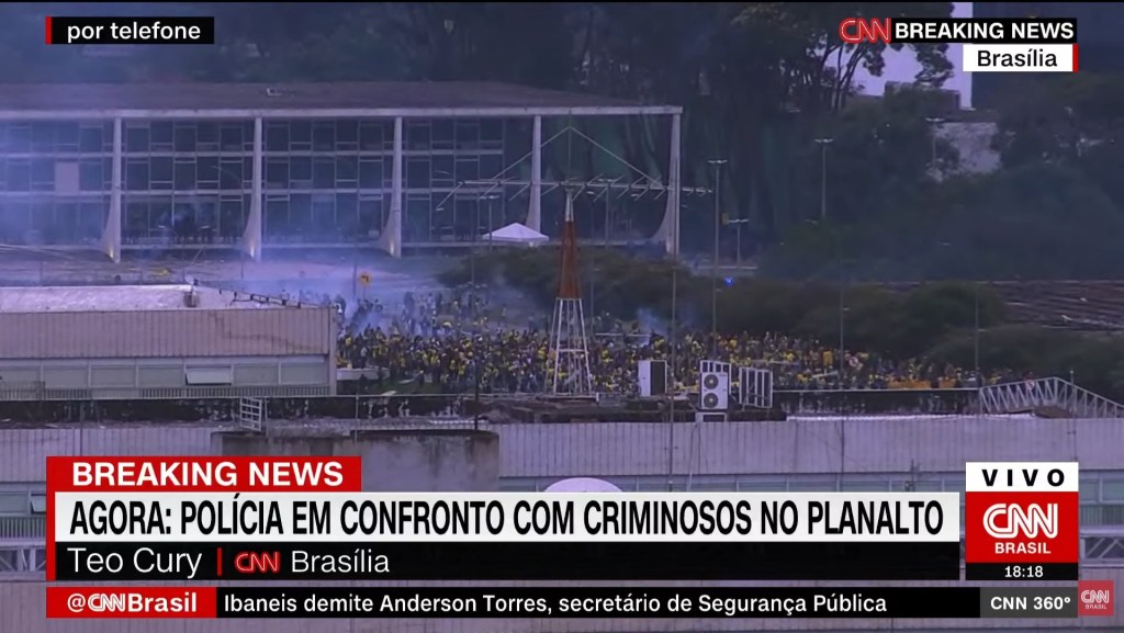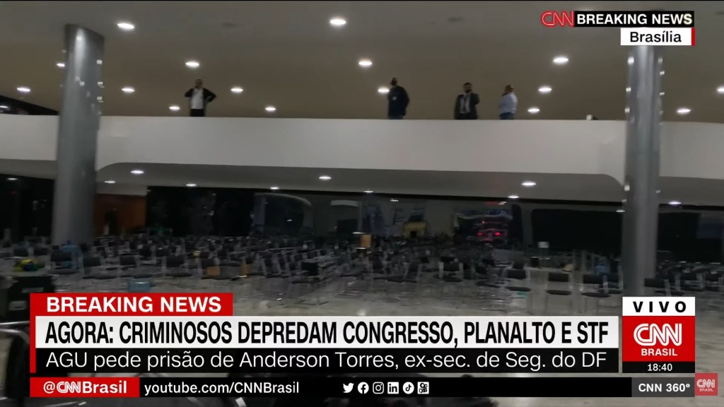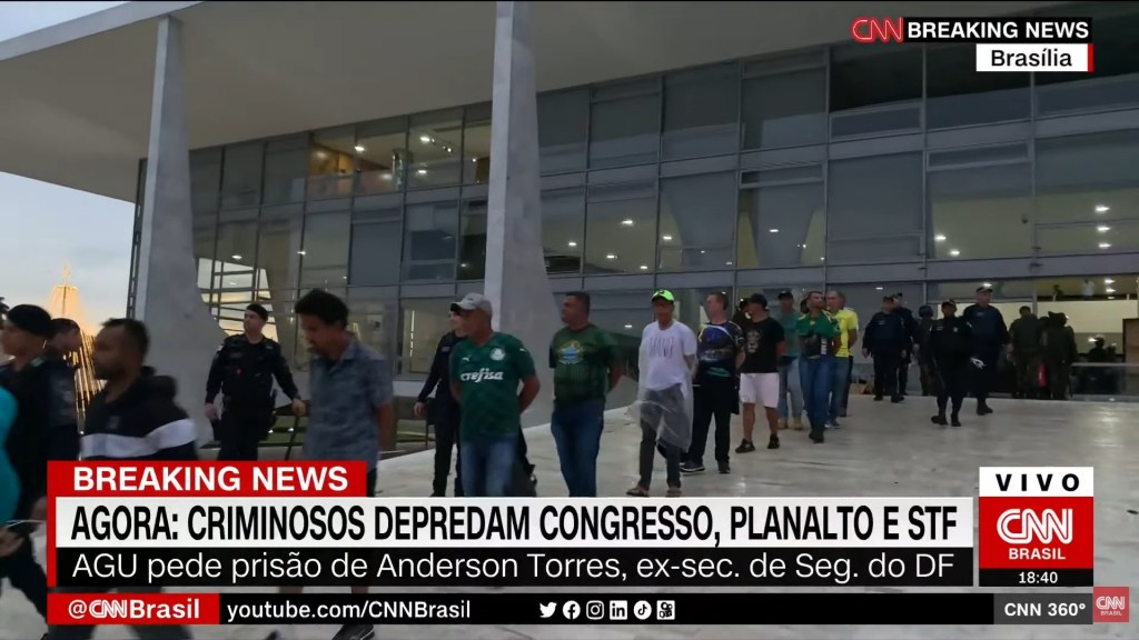 20.54 Os manifestantes entraron no Congreso Nacional (sede do poder lexislativo), no Pazo do Planalto (sede do poder executivo) e na sede do Tribunal Supremo Federal.